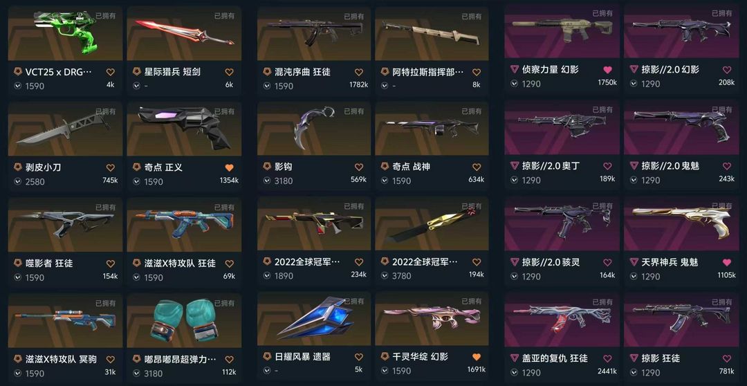 可排✨滋滋特攻队套✨22冠军套✨千灵华绽幻影✨混沌狂徒✨掠影2.0套✨剥皮小刀✨盖亚狂徒✨奇点正义✨