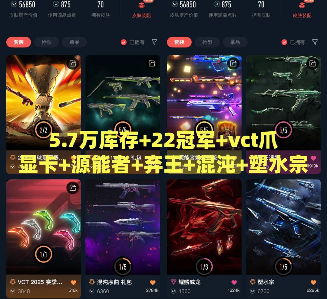 可排〓大库存〓22冠军套vct爪刀〓混沌弃王显卡狂徒〓黑波之刃剥皮小刀威龙之刃〓源能者般若M4〓离子