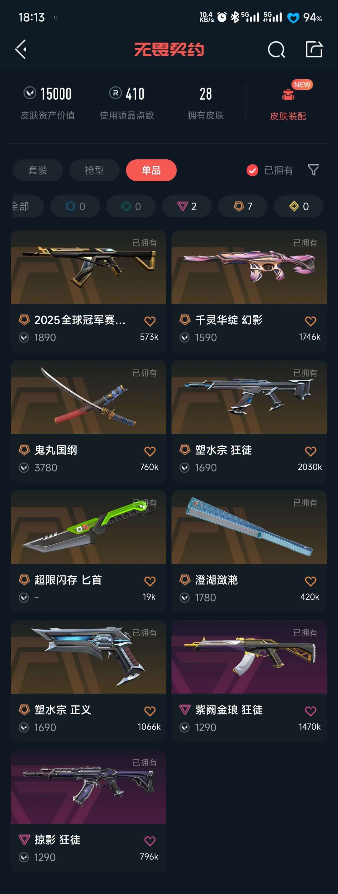 AK:掠夺、紫金、塑水宗、25冠军幻影:莲花正义:塑水宗刀:鬼丸国纲、澄湖潋滟