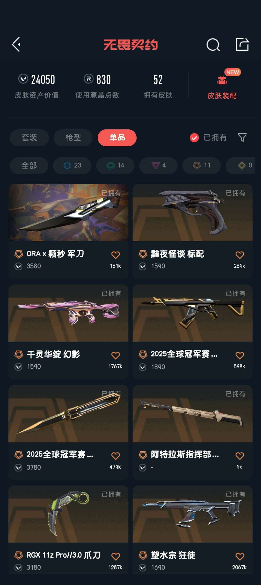 武器皮肤数量:52