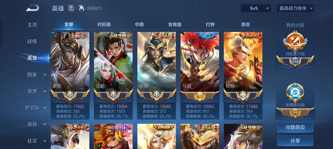 12月1.7w国服蒙恬⭐国服关羽⭐国服杨戬❤️国服元歌❤️可排位禁巅峰