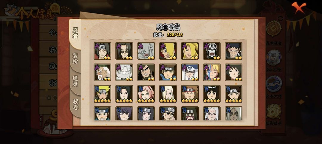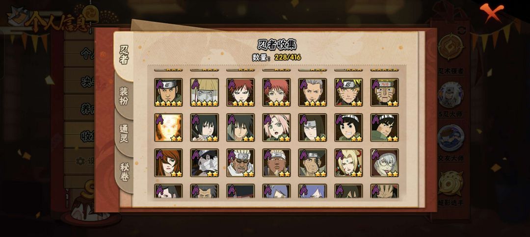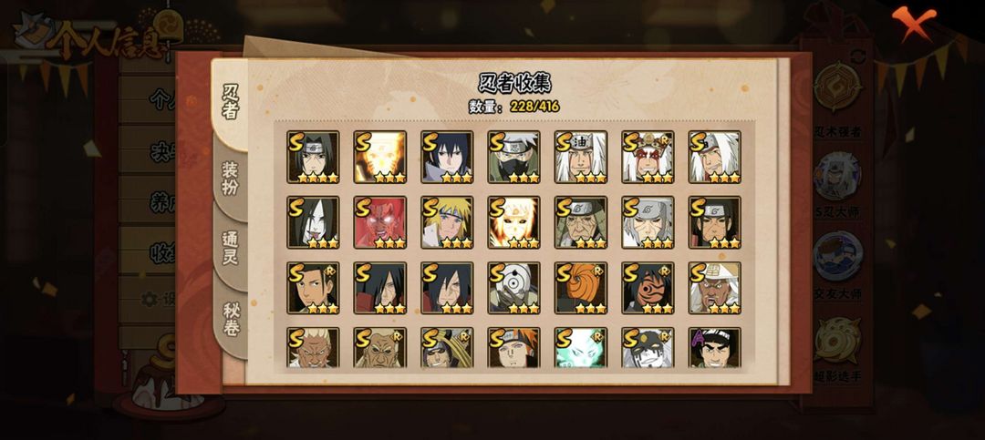 装备描述:27S✨43A✨228个忍者,五影班,九喇嘛水门,须佐卡卡西,解班,卑留呼,漂泊系列小南,超,带土