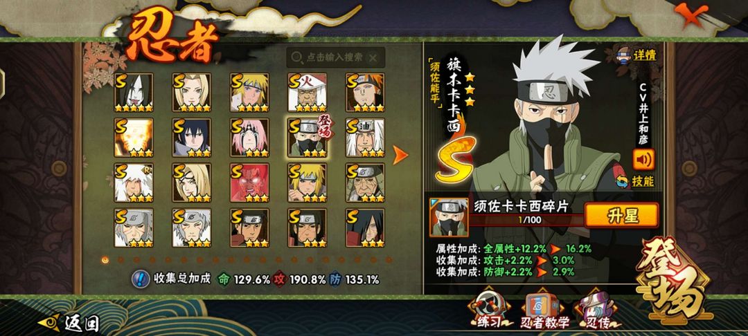 2千万战力传说自来也已秒 大筒木舍人 36个S 50多个A 公测老号 密卷等级高