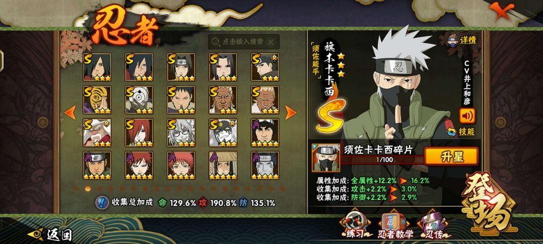 装备描述:传说自来也已秒 大筒木舍人 36个S 50多个A 公测老号 密卷等级高