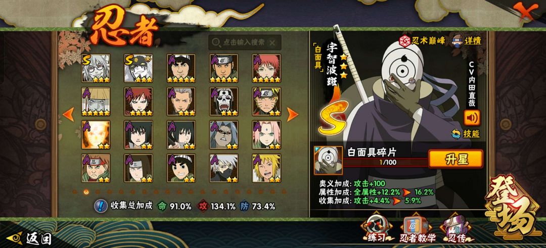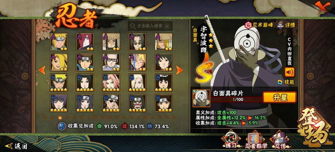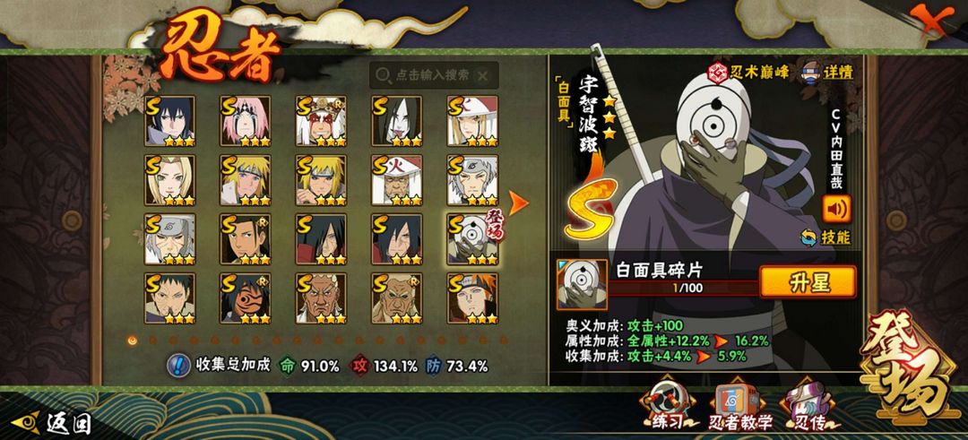 装备描述:忍法帖三代雷,红夜,柱间,桃氏。通灵有熊猫