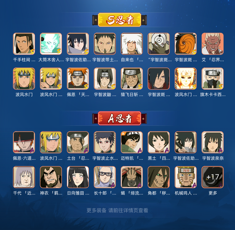 限制: 租号3次及以上 |装备描述:大筒木舍人❤️漂泊带土❤️忍战雷影❤️秽土三代❤️须佐卡卡西❤️创立柱间❤️解斑❤️白面具❤️破面❤️骨架❤️青水❤️漂泊佩恩❤️桃博❤️秽土角都❤️新春止水❤️神农❤️冬日花火❤️小二代 // 螃蟹❤️熊猫 // 振奋❤️毅力
