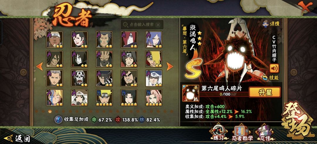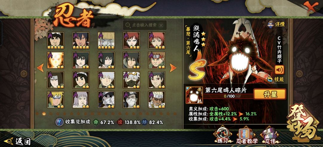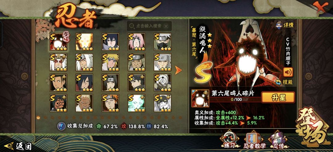 装备描述:20S,37A,泳卡带皮肤,漂带带皮肤,新春止水,桀骜老马,红面具,白面具,死二,以及近几期忍法帖忍者