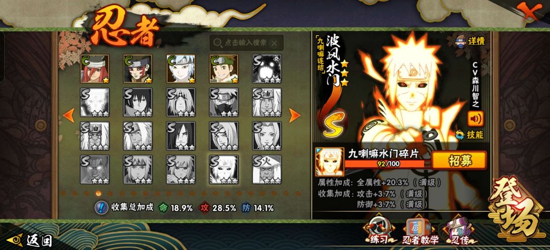 侠隐佐助侠隐大筒木新春止水神农+战力240万+92片金水