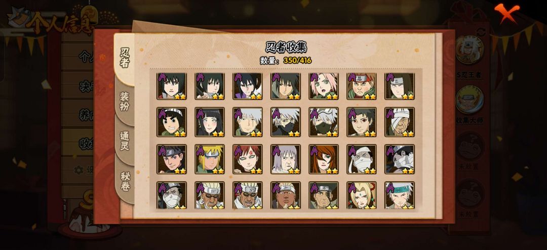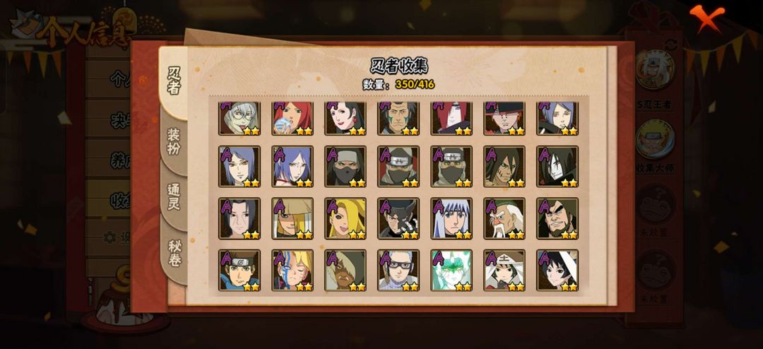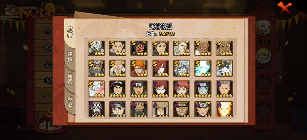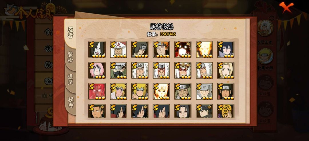350忍者✨43S✨69A✨2000战力✨天道超✨漂泊带土✨白面具✨侠隐佐助✨超多忍者等你来玩✨✨✨