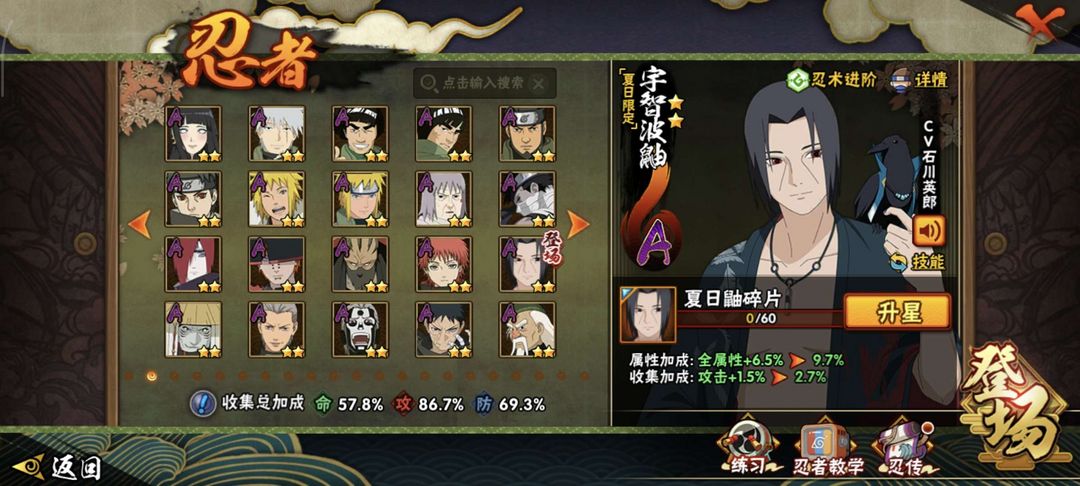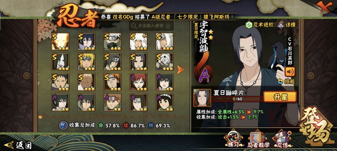 装备描述:13s, 破面带土,忍战雷,须佐卡卡西,秽土鼬,30a,漂泊带土,漂泊佩恩,夏日鼬,新春水门.....