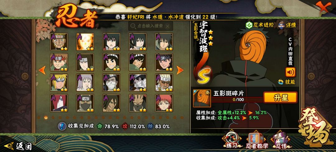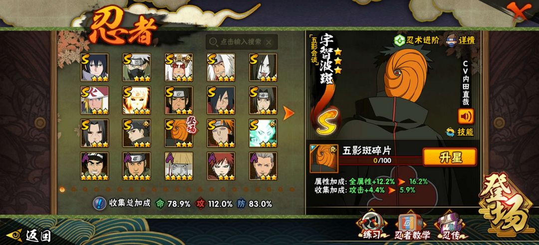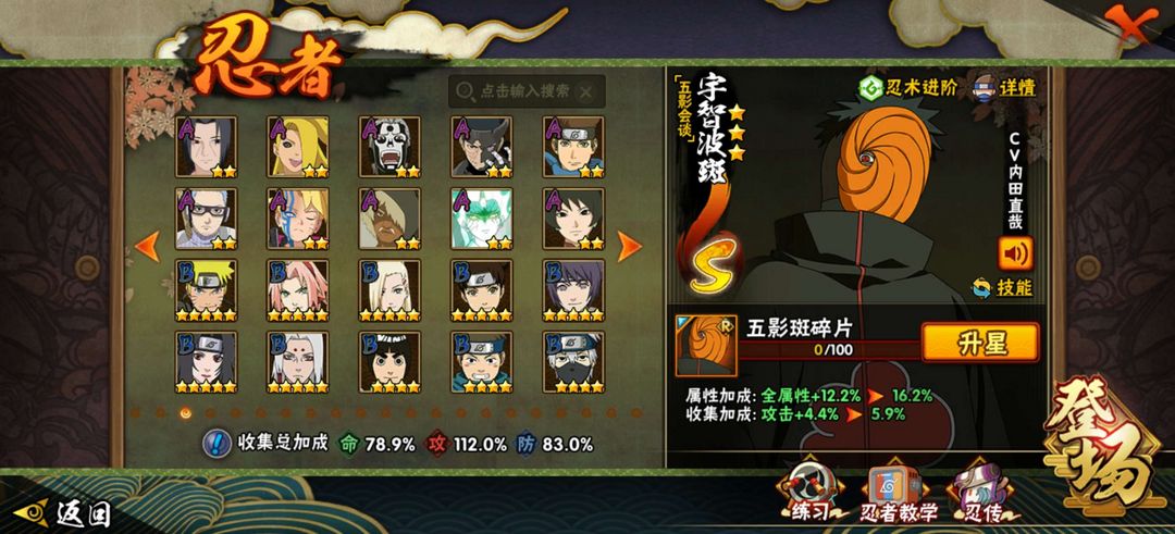 装备描述:忍者不多,有漂泊带土,有五影斑,有熊猫,