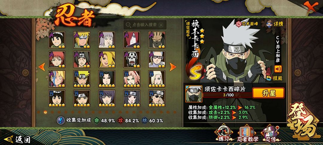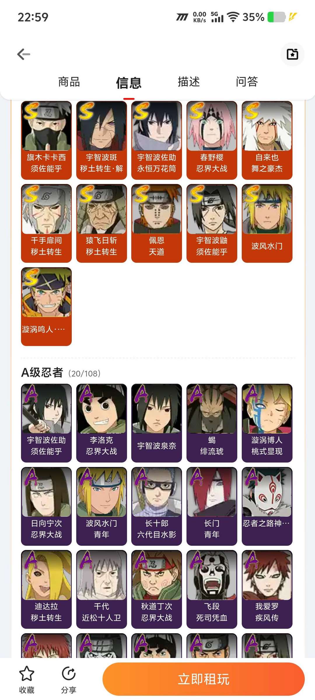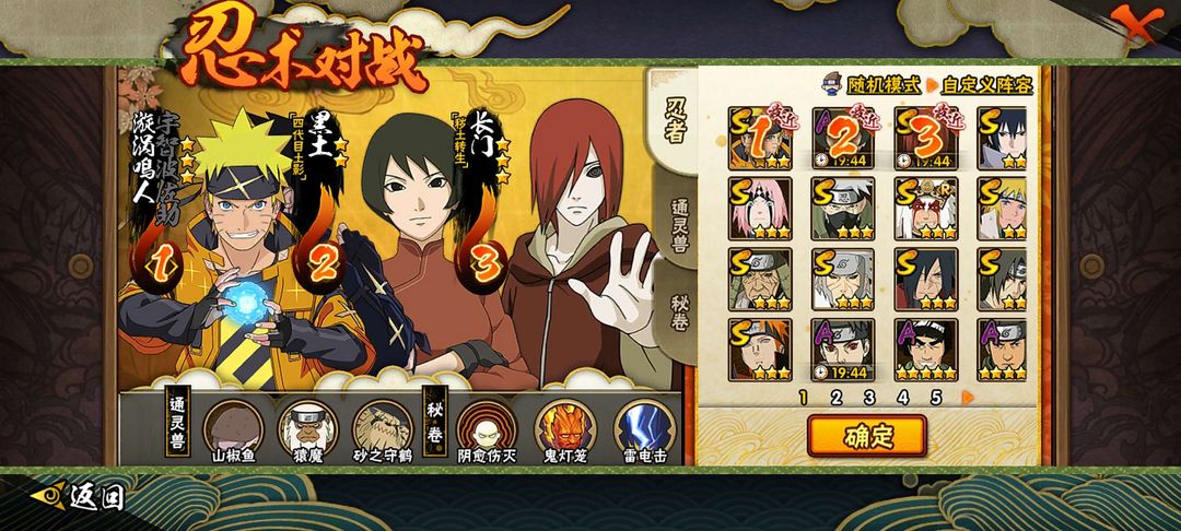 装备描述:卡卡西小樱解斑死二老三代永恒佐助12s20A其中一个s体验卡秽土长门49B 通灵解锁到蛤蟆龙