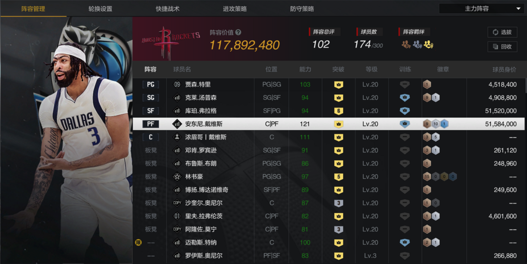 【浓眉哥】满突安东尼戴维斯♥6弗拉格特里克莱♥王朝队套♥可排位