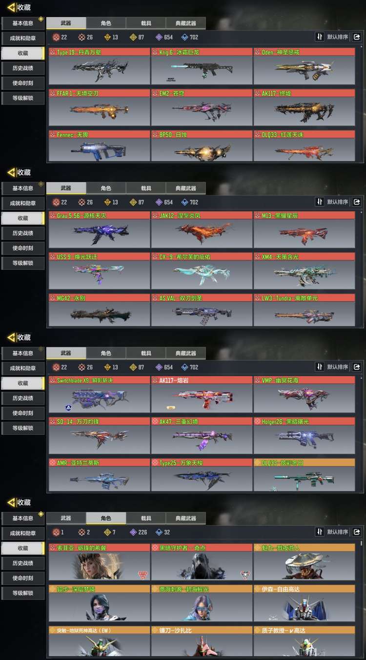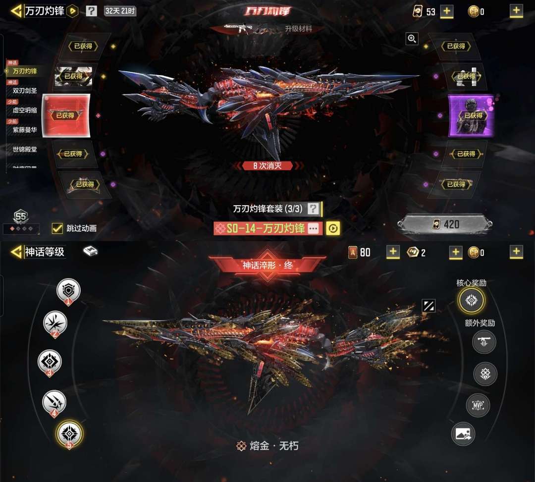 满级万刃灼锋✨高达全活动全33神话全满级120橙✨满级万象天梭幽冥离散焕光天策动能雪林尼尔蛇刃灾厄