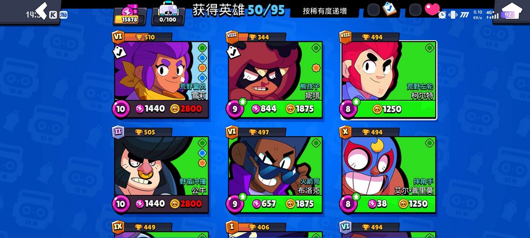 15878奖杯,50位角色,有黑鸦传说机甲皮肤,杰西的暗黑龙骑士等等角色练度还可以想玩可以租着玩下