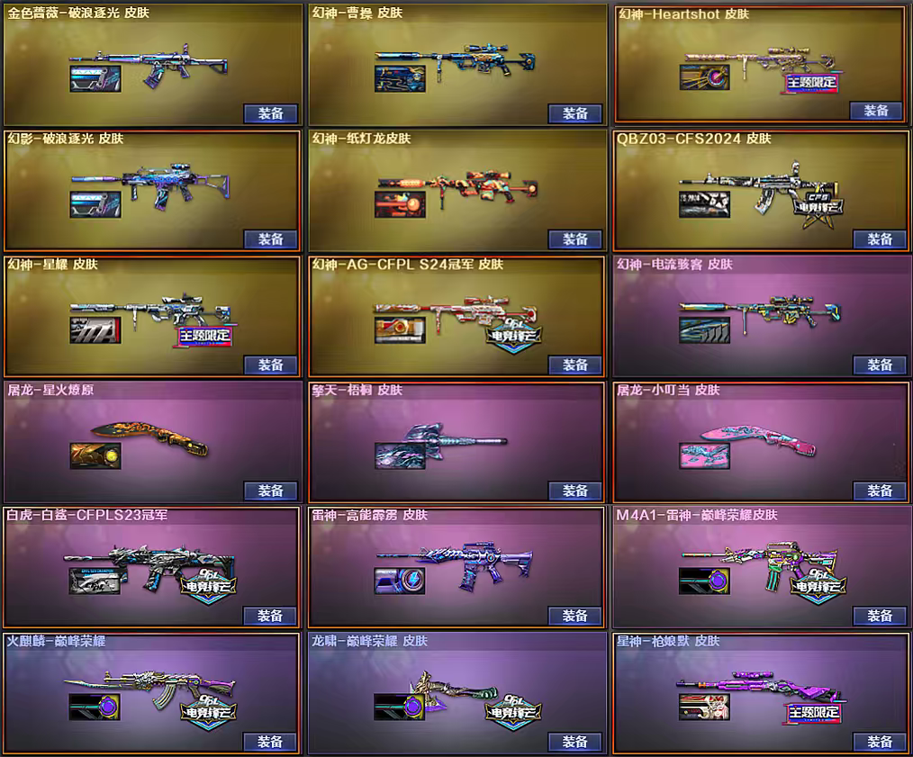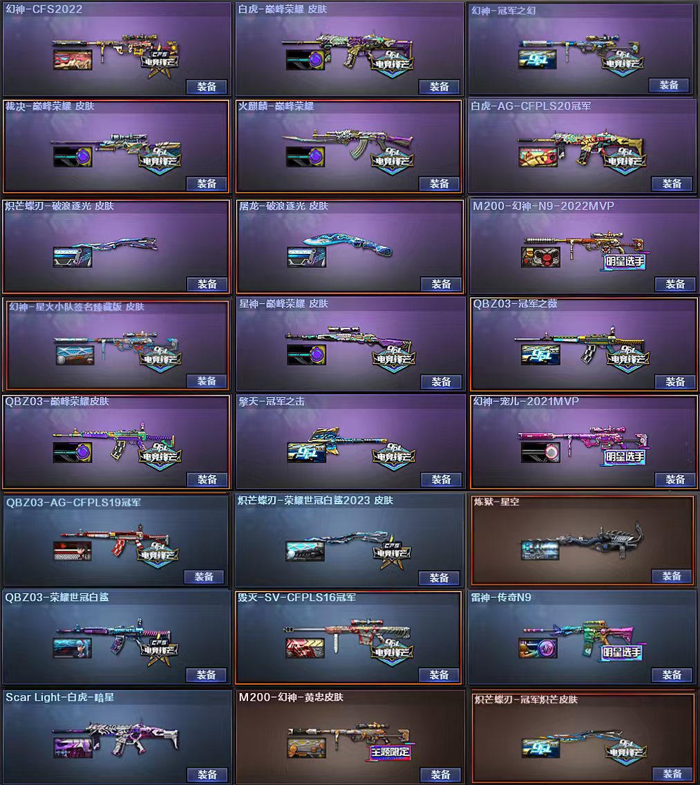 7传说灵眸幽瞳,6幻神13皮,有小狮子皮肤,星神白虎裁决qbz雷暴王者usp冥王usp等,全音效。