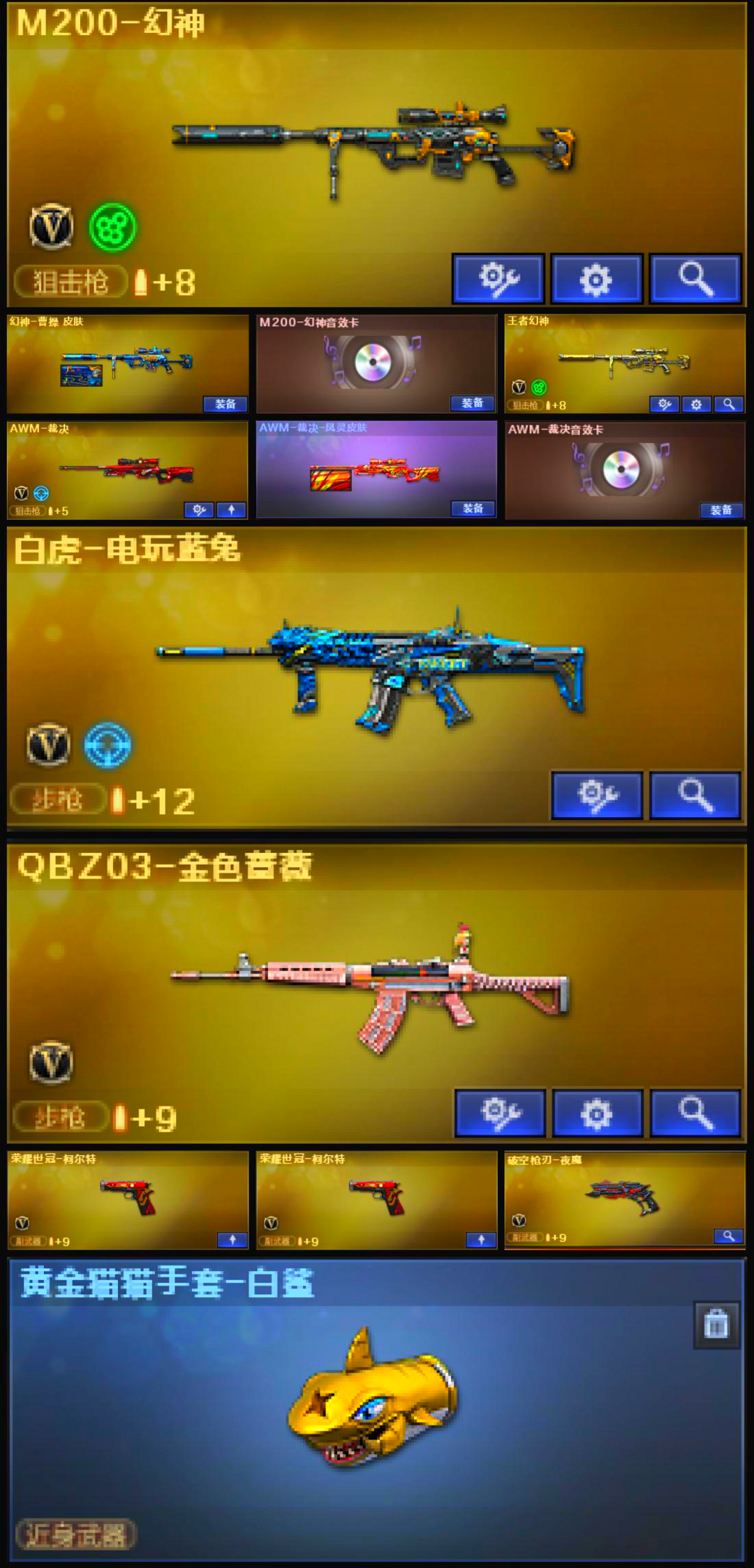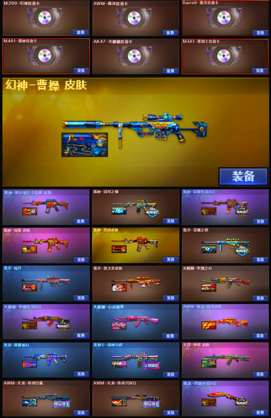 幻神音效卡曹操⭐裁决音效卡凤灵⭐王者幻神⭐白虎QBZ⭐雷神冠军毁灭荣耀三件套⭐世冠柯尔特*2