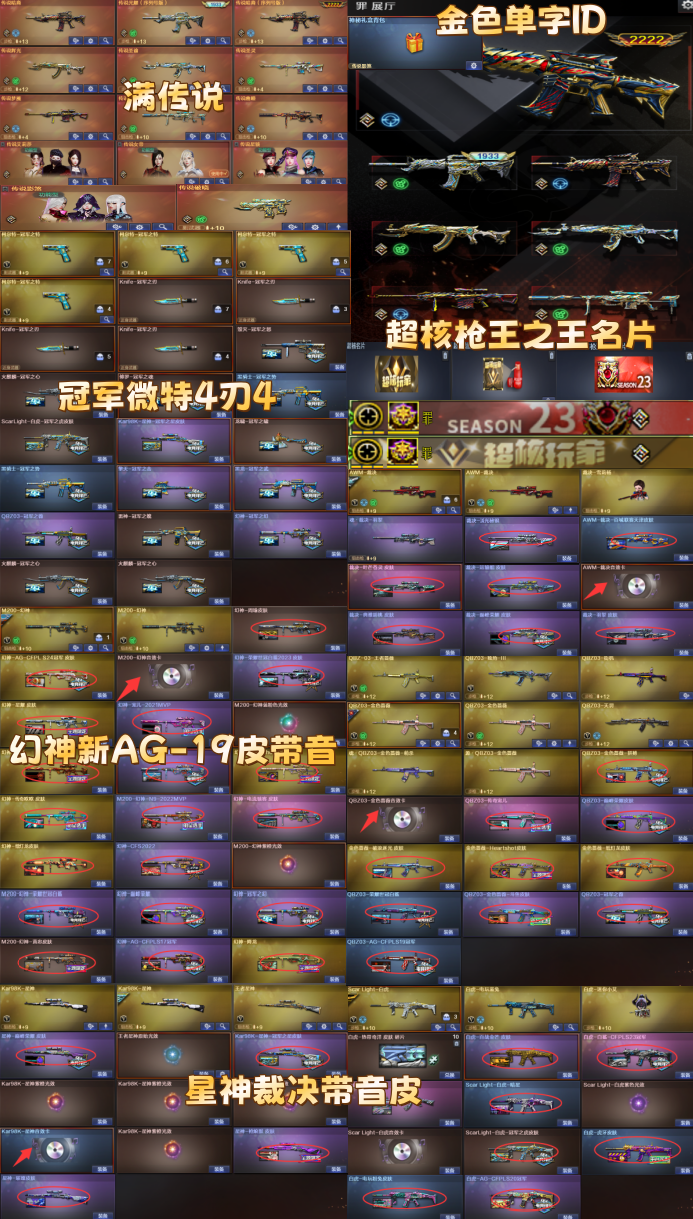 限制: 租号10次及以上 |装备描述:王者武器:王者霜心;AK47-雷暴王者;斩神刀-雷暴王者;USP-雷暴王者;闪光弹-雷暴王者;烟雾弹-雷暴王者;高爆手雷-雷暴王者;王者冰锋;天启-悦智-觉醒版;王者之烈-觉醒版;炫金骑士;王者星神-觉醒版;王者之光-觉醒版;王者之魂-觉醒版;闪光弹-雷霆王者-觉醒版;炫金天龙;王者冰魄-觉醒版;王者之幻-觉醒版;王者之武-觉醒版;王者青龙;王者之灵-觉醒版;王者玉锋;炫金毁灭;烟雾弹-雷霆王者-觉醒版;高爆手雷-雷霆王者;M4A1-雷霆王者-觉醒版;王者蔷薇-觉醒版;Barrett-雷霆王者-觉醒版;COP 357-雷霆王者-觉醒版;炫金超新星;雷霆王者之锋-觉醒版;王者炎心-觉醒版;王者雷怒;QBZ-03-王者蔷薇-觉醒版;王者之刺-觉醒版;炫金火麒麟;炫金雷神;炼狱-悦蓝-觉醒版;炫金无影;王者之锋-觉醒版;王者之势-觉醒版;王者之决-觉醒版;炫金修罗;王者之心-觉醒版 英雄武器:Barrett-碧霄极光;荣耀世冠-龙啸;烟雾弹-玄豹;黑骑士-海王;高爆手雷-玄豹;闪光弹-玄豹;USP-冥王;机械迷城-穹宇;传说圣谕;丛林匕首-玄豹;Anaconda-玄豹;FAMAS G2-天戎