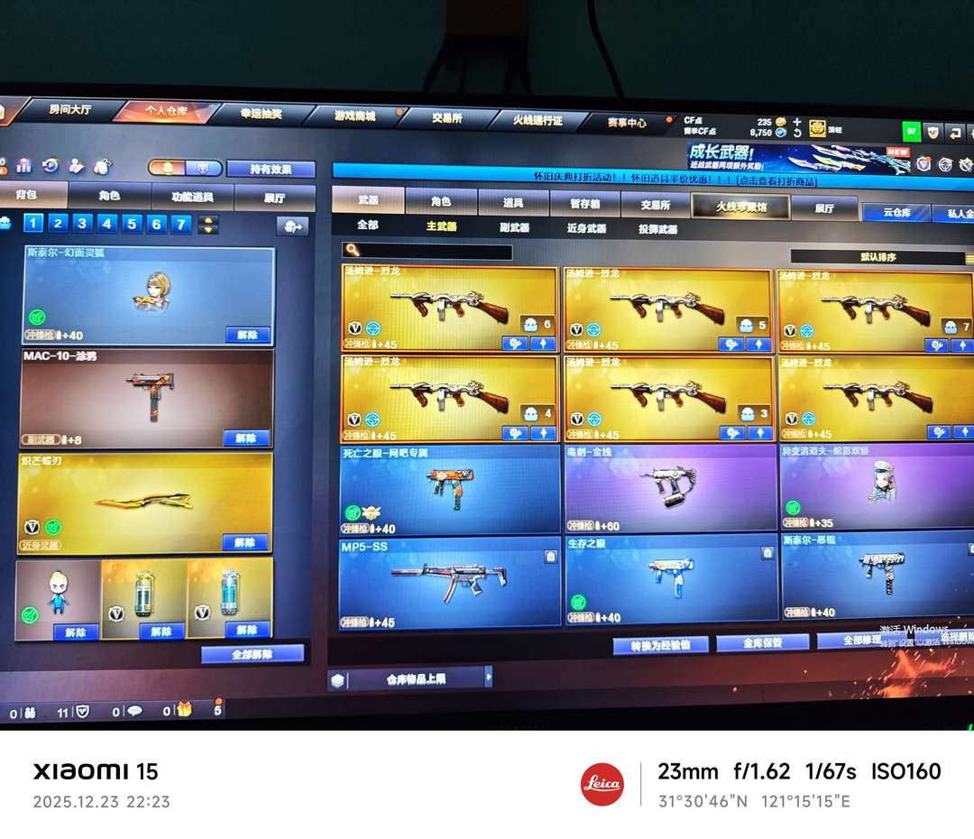 装备描述:Barrett-毁灭音效卡,毁灭-星空,魅影玩偶,战舰玩偶,雷神-暗月,电磁巨兽玩偶,葵,零,炫金火麒麟,AN94-超新星,AWM-天龙,9A91-烈火,M4A1-雷神,Barrett-毁灭,M4A1-黑骑士,汤姆逊-烈龙,麒麟刺,屠龙,沙鹰-修罗,龙啸,擎天,M4A1-玫瑰精灵,沙鹰-天神,AK47-无影,AK47-机械迷城,M4A1-千变