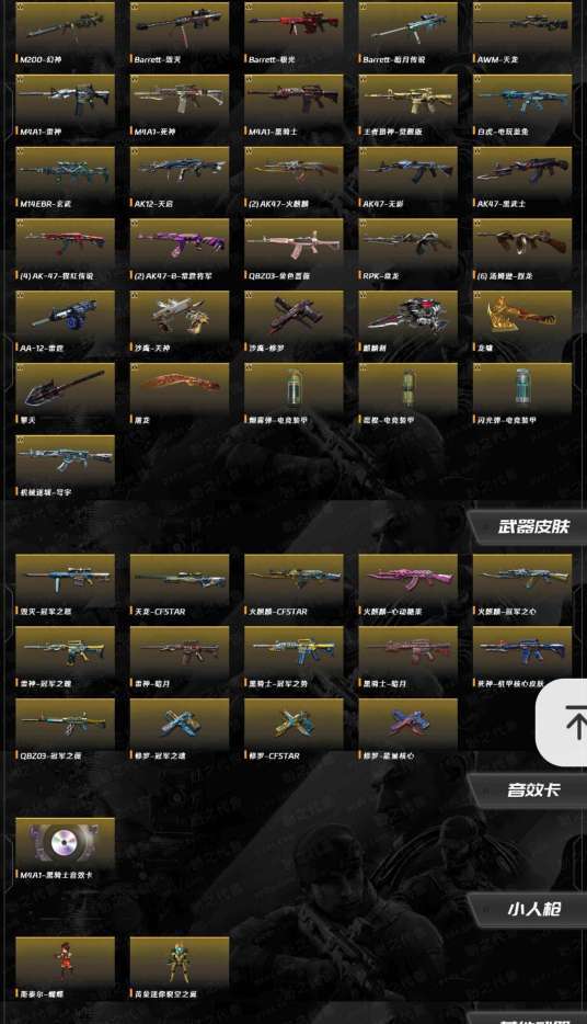 装备描述:生化全套,爆破幻神qbz金色蔷薇电玩白虎可排位。