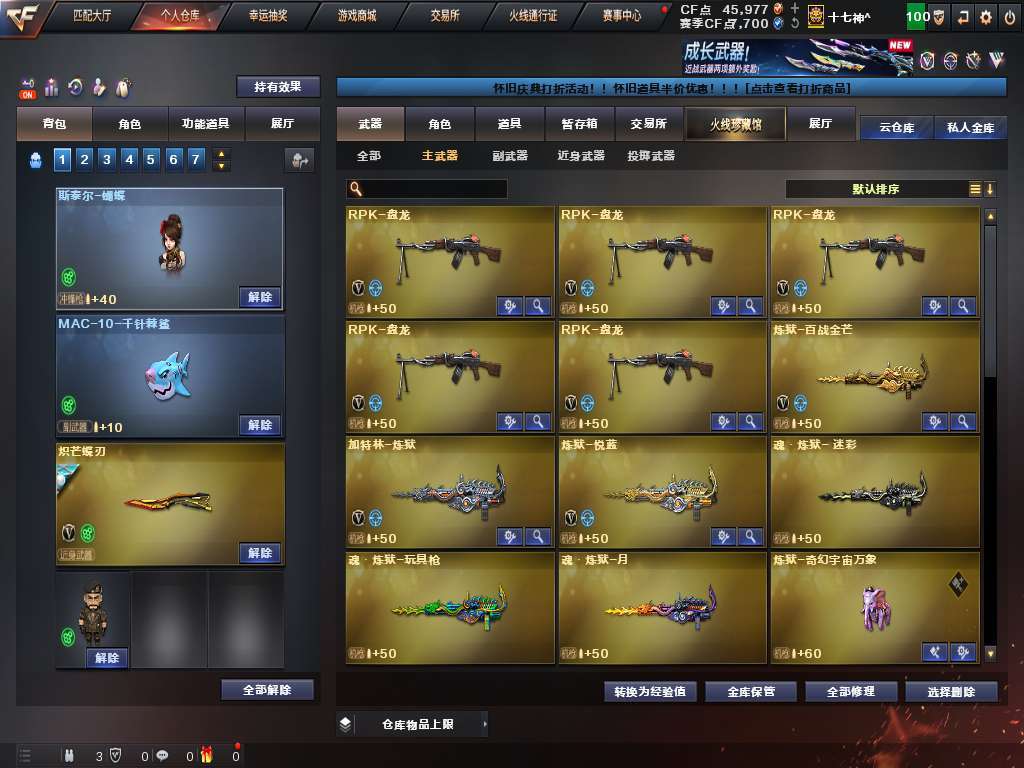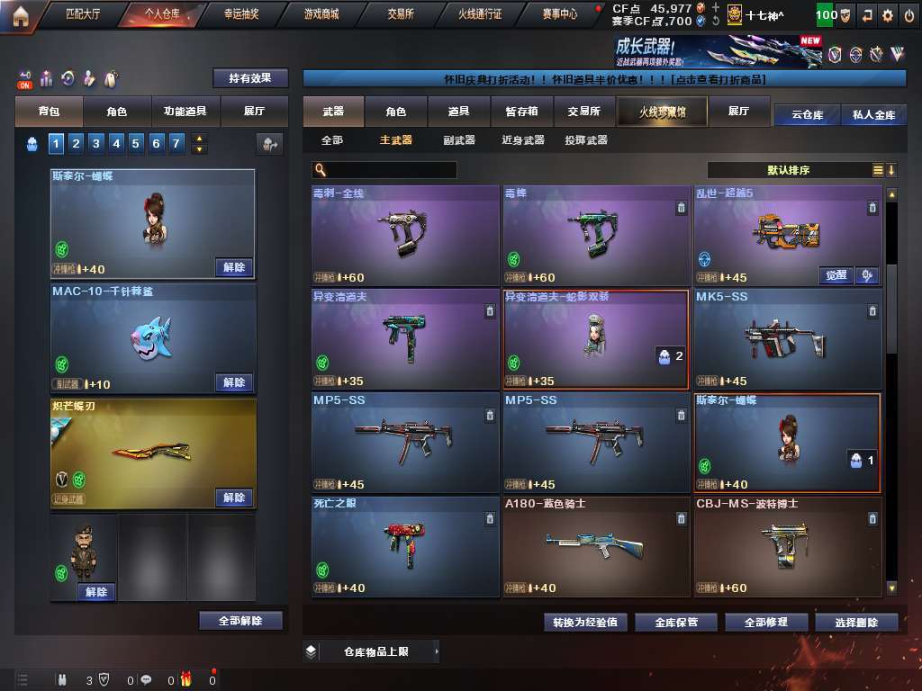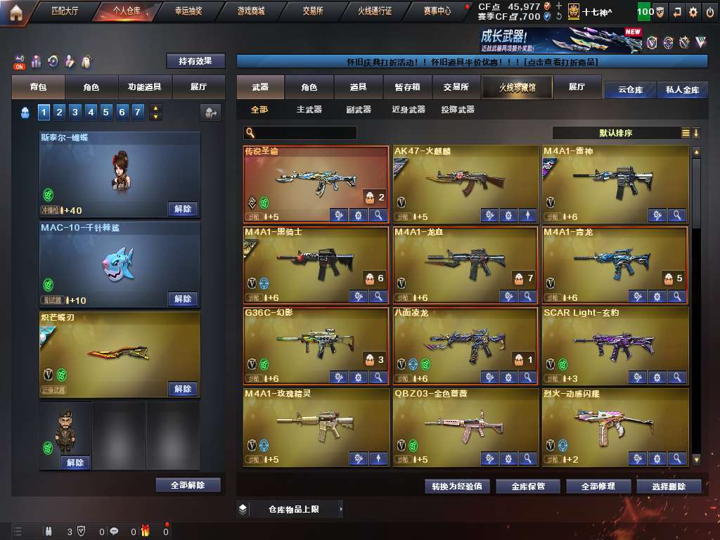 幻神g36c幻影泡泡象蝴蝶炽芒蝶刃,八面凌龙,六盘六烈爆破生化全装号,该有的都有。