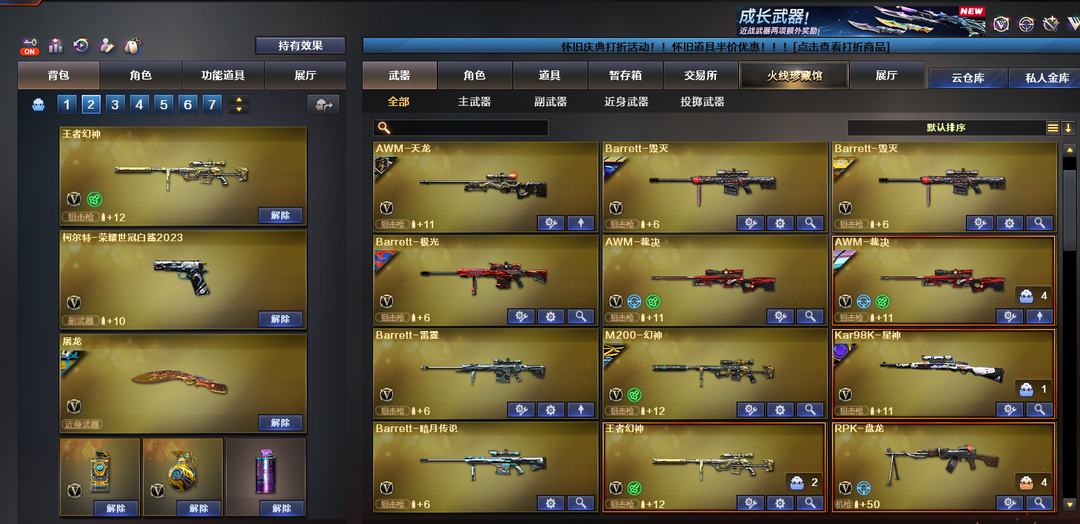 装备描述:幻神9皮带卡星神3皮带卡毁灭7皮带卡裁决4皮带卡双传说手枪传说AK传说M4白虎3皮QBZ6皮雷神13皮3COPUSP雷暴冠军柯尔特白鲨柯尔特无冕之王荣耀世冠柯尔特六烈六盘带蝴蝶刀22套英雄级投掷加幻兽投掷冠军之刃王者春王者魅影王者云悠悠王者葵王者貂蝉雨墨岚兮儿春