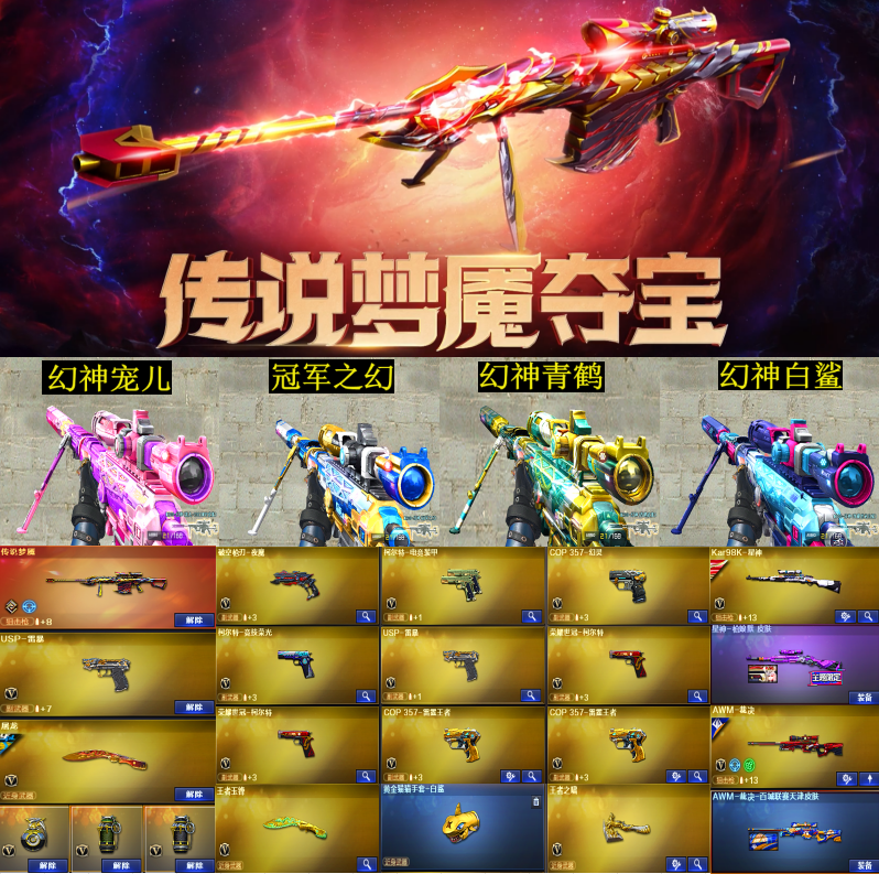 传说梦魇⭐幻神4皮宠儿冠幻/星神枪娘/裁决百城皮丨极品毁灭11皮音效/蔷薇白鲨皮丨4防生化云悠悠6烈