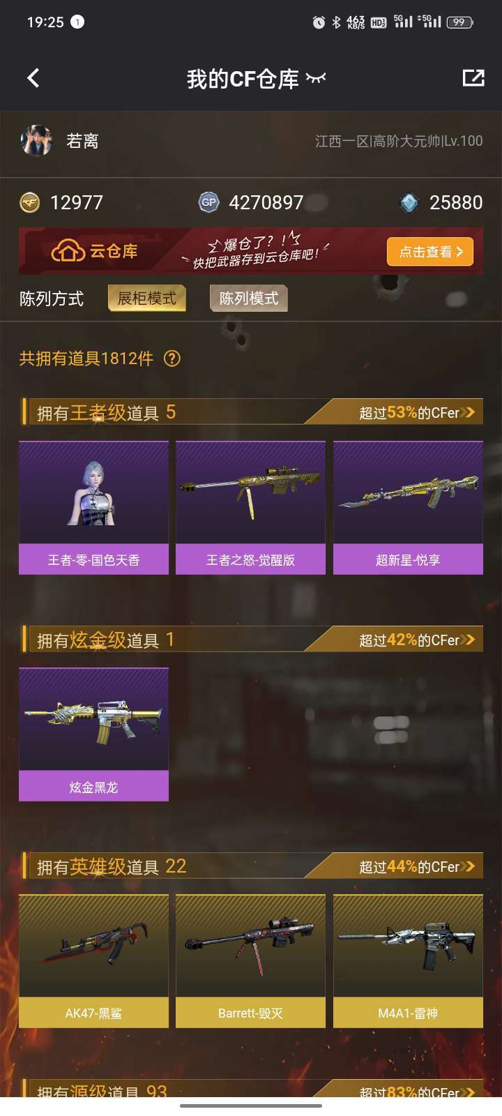 枪王2,幻神n9皮➕纸灯龙,雷神传奇n9➕航星皮,毁灭➕cfpl冠军皮,角色鹰,华,王者零国色天香