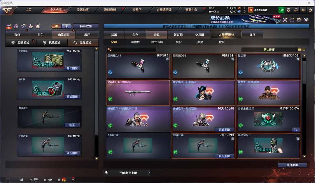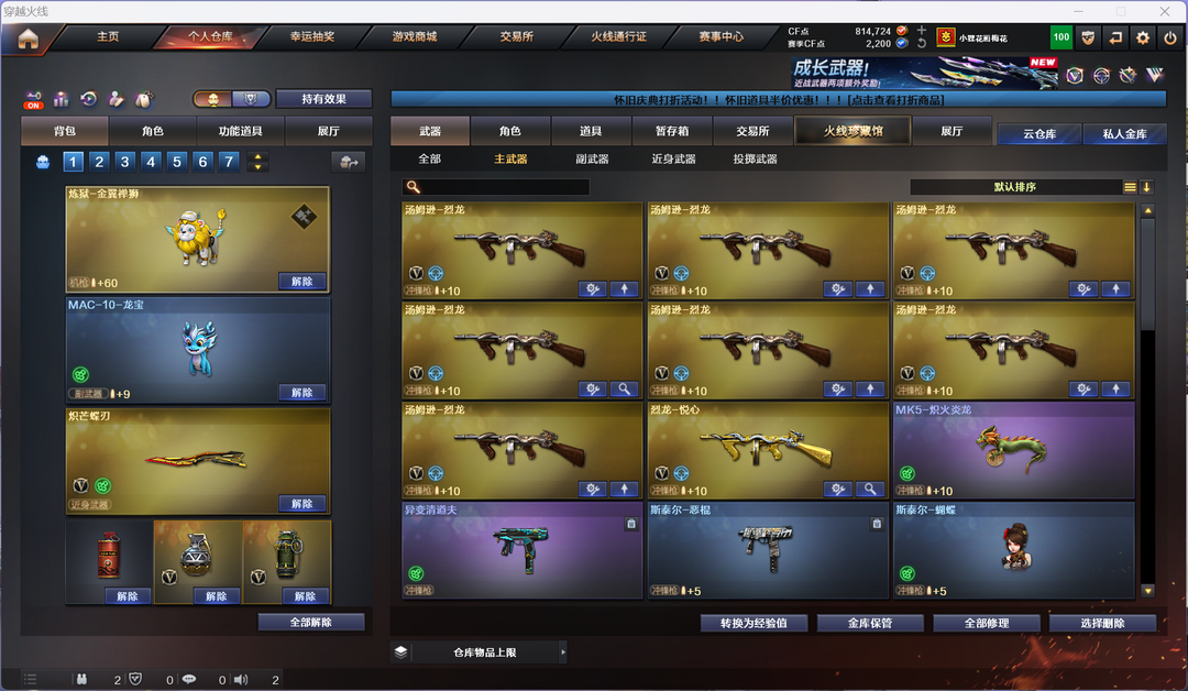 4防生化隼金翼禅狮+泡泡象2把蝴蝶刀6盘6烈钟馗炼狱带炼狱音效卡mac龙宝斯泰尔蝴蝶异变清道夫