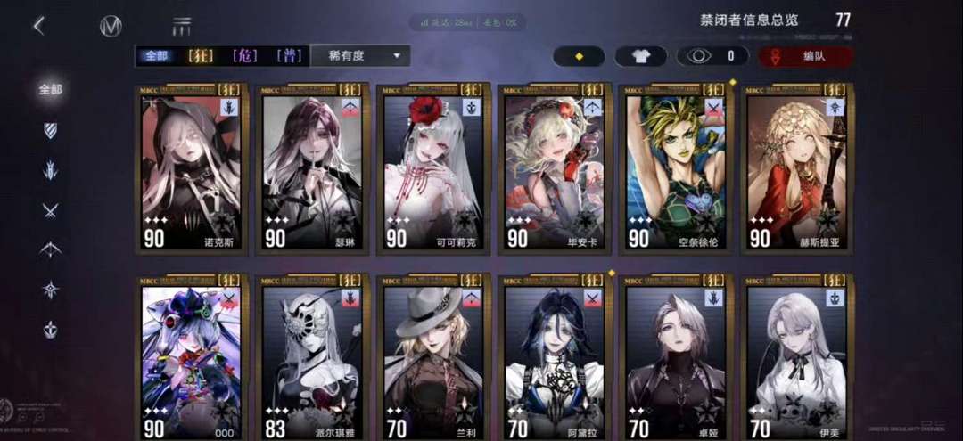 无期迷途,账号等级75,禁闭者77个(18个狂级禁闭者),瑟琳,诺克斯,可可莉克,应有尽有!