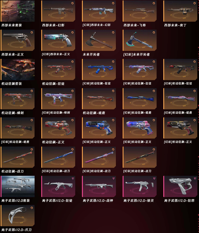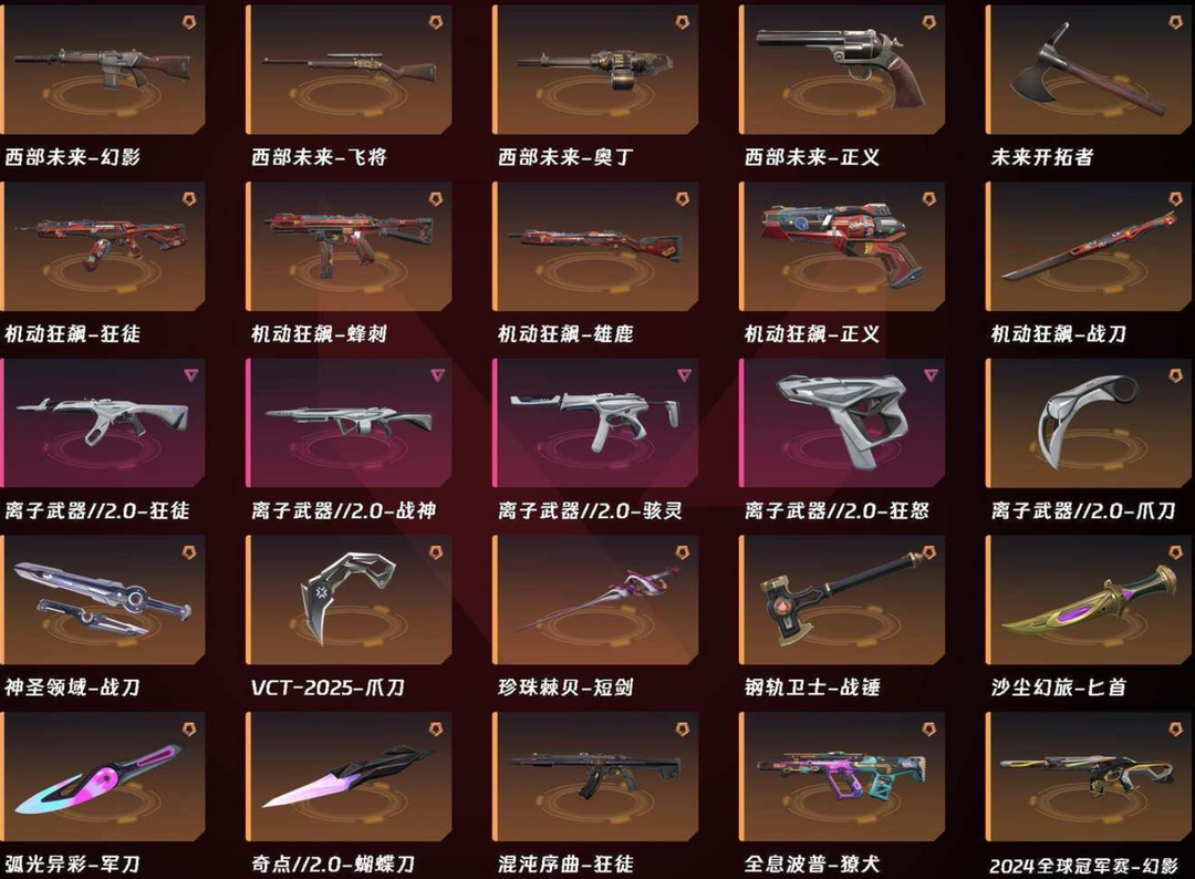 可排位大库存☆离子武器☆混沌序曲☆VCT爪刀☆西部套☆24全球套☆奇点2.0☆机动套☆各种散件☆炫彩