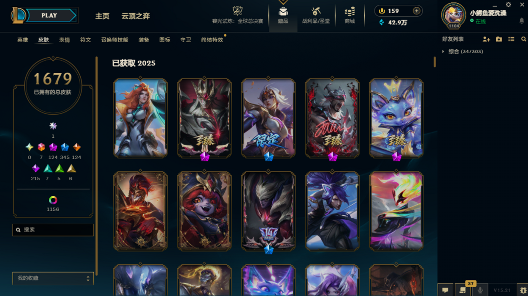 1610原皮⭐全套冠军皮肤⭐粉绿龙瞎⭐终结特效⭐奖池掏空⭐124至臻