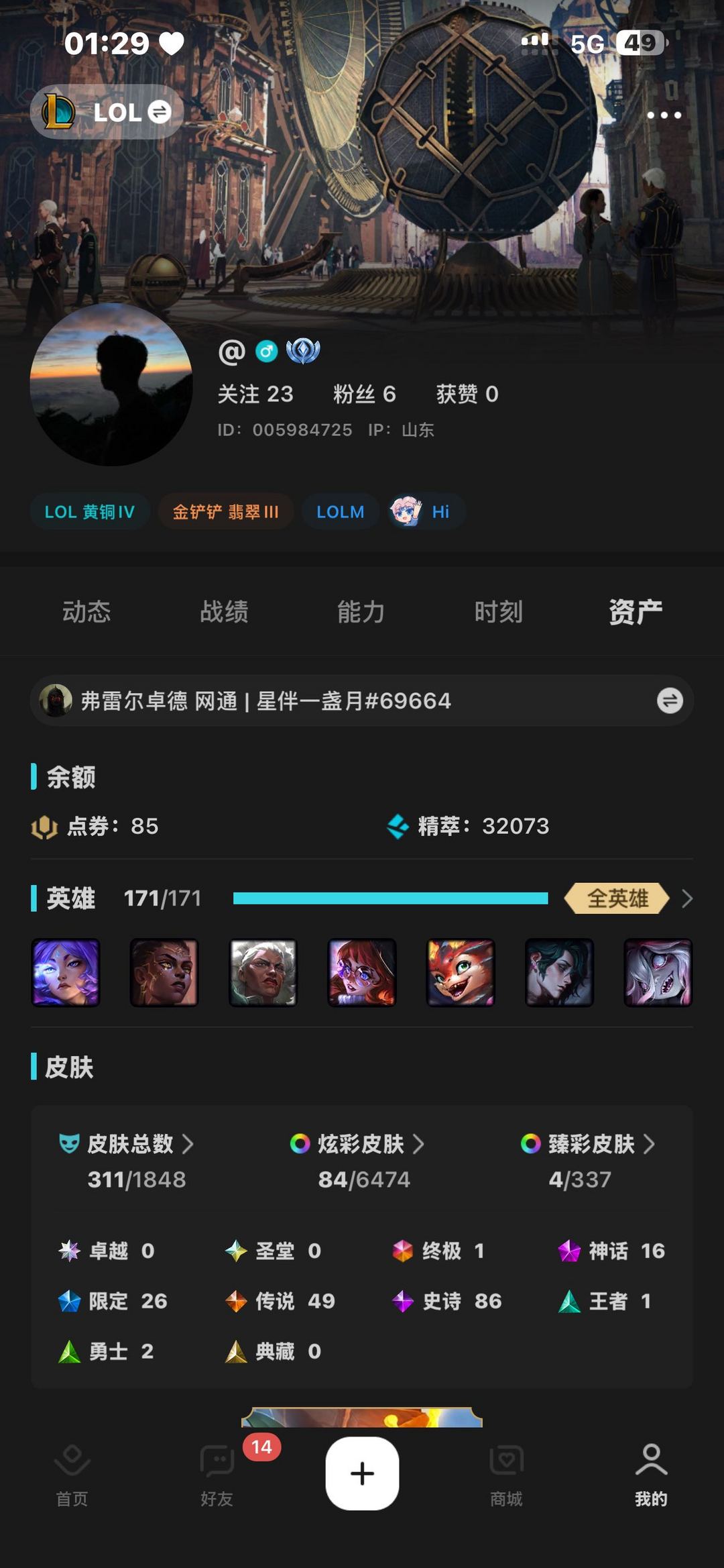 弗雷尔卓德⭐️全皮311⭐️炫彩84⭐️臻彩4⭐️粉龙瞎子⭐️金龙瞎子⭐️神王诺手盖伦⭐️至臻9