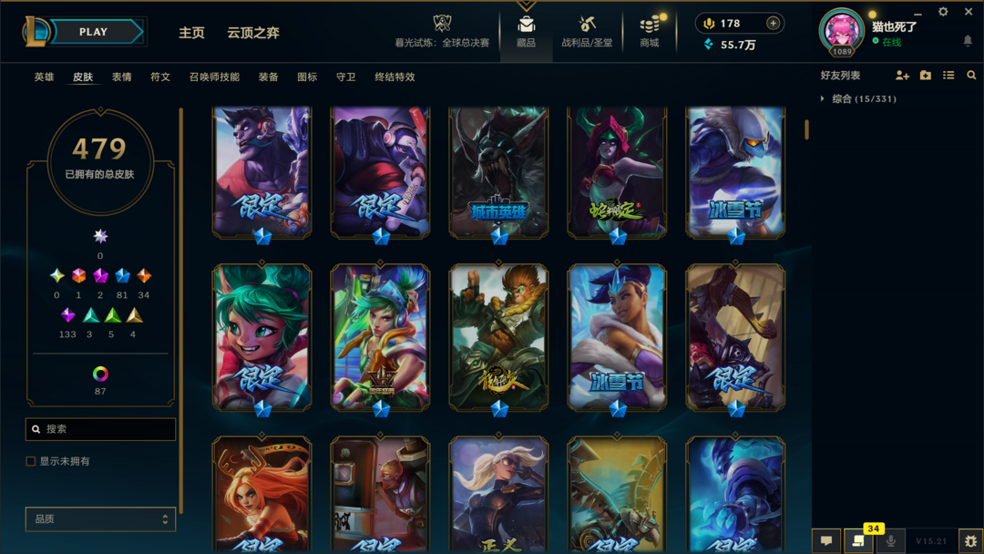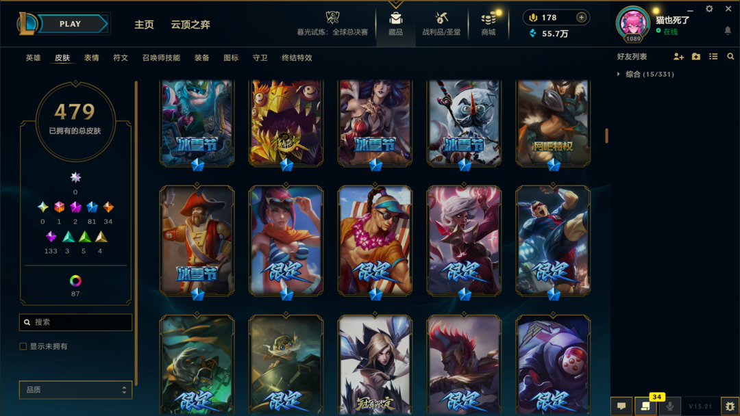 段位准█1000皮肤〓10至臻海克斯〓神拳吕布█未来战士█冰雪节限定