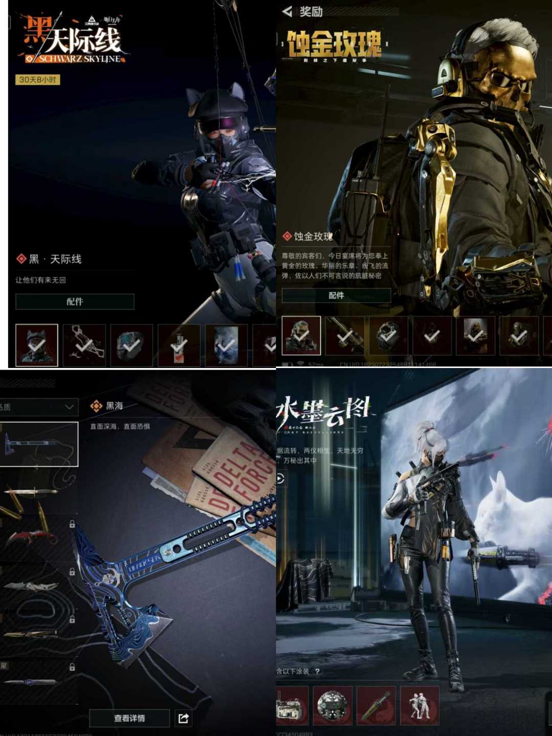 皮肤号 3红皮,黑海。蚀金玫瑰,露娜黑天际线,(不要动限时三角劵)