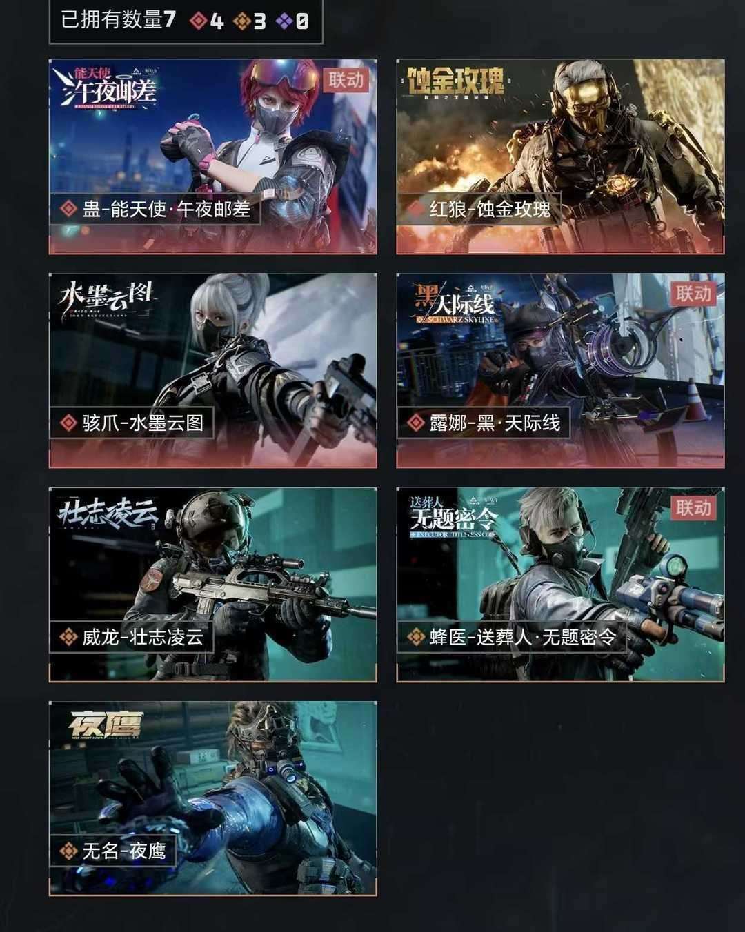 皮肤号 亿级哈夫币4红干员❤️3红刀皮❤️北极星+黑海+电锯+黑天际线+蚀金玫瑰+午夜邮差+水墨云图+夜鹰