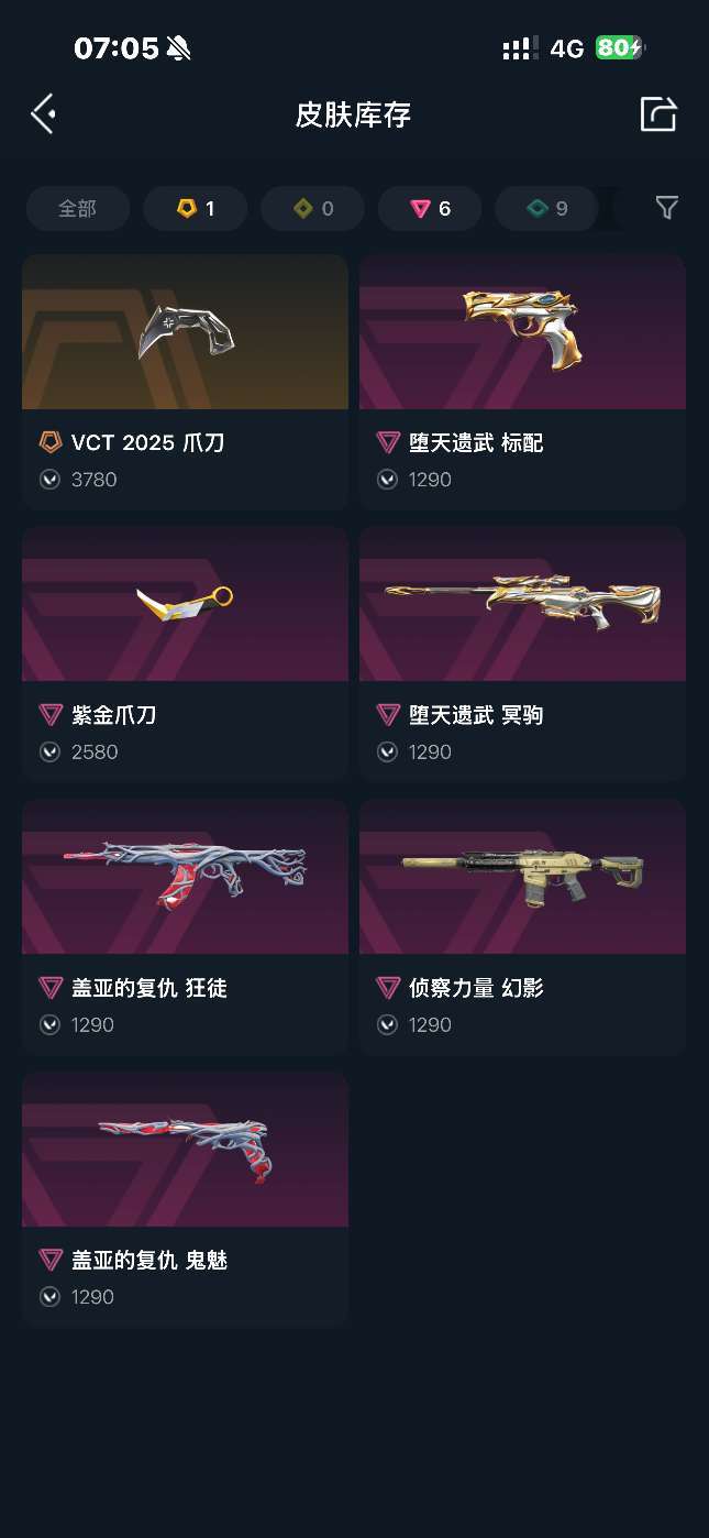 可排位❤️网红枪械皮❤️内测账号❤️盖亚 侦查幻紫金爪刀 Vct爪刀 堕天冥驹新赛季手册已秒