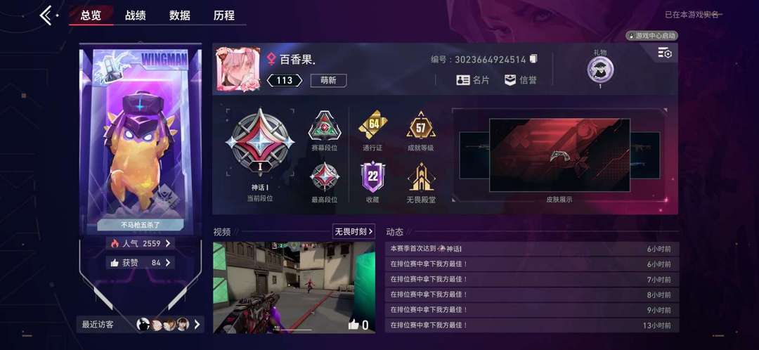 限制: 租号30次及以上 |装备描述:网红枪械皮 内测账号 盖亚狂徒 侦查幻影 紫金爪刀Vct爪刀 堕天冥驹 手册己秒 段位钻石1 皮蛋卡面 以后的皮肤我会第一时间秒 禁止利用账号进行开挂、使用辅助违规软件诈骗等违规操作。