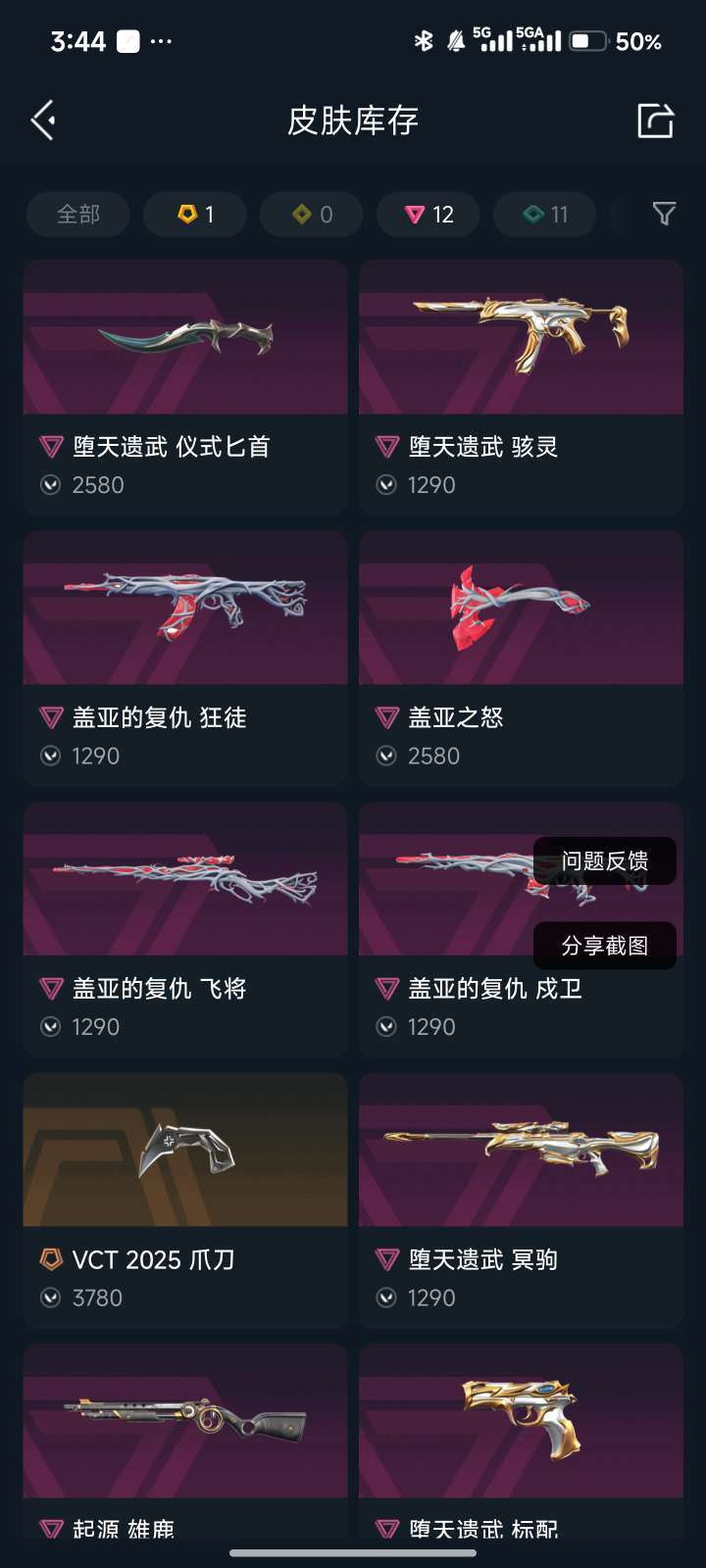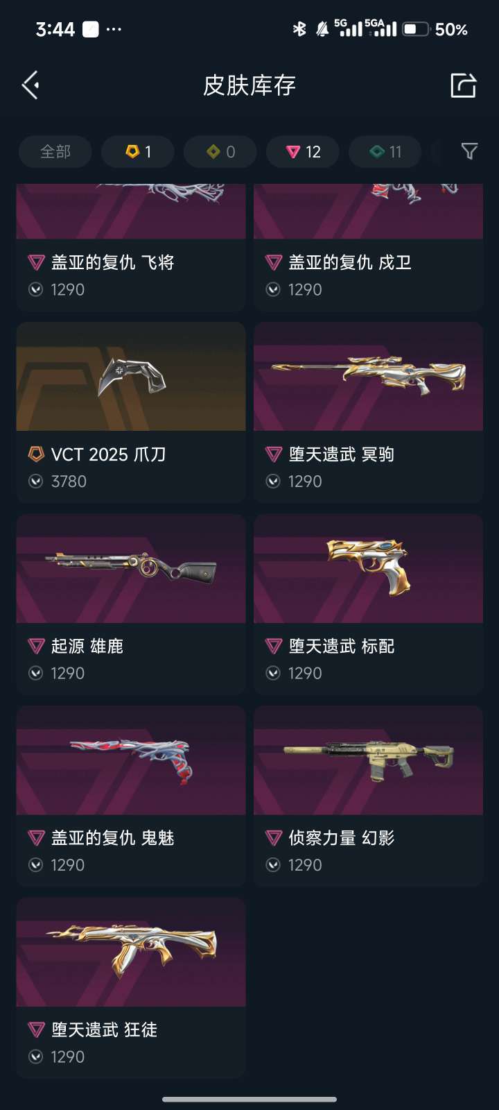 盖亚1.0全套,堕天遗物全套,vct爪刀,起源喷子,侦察幻影