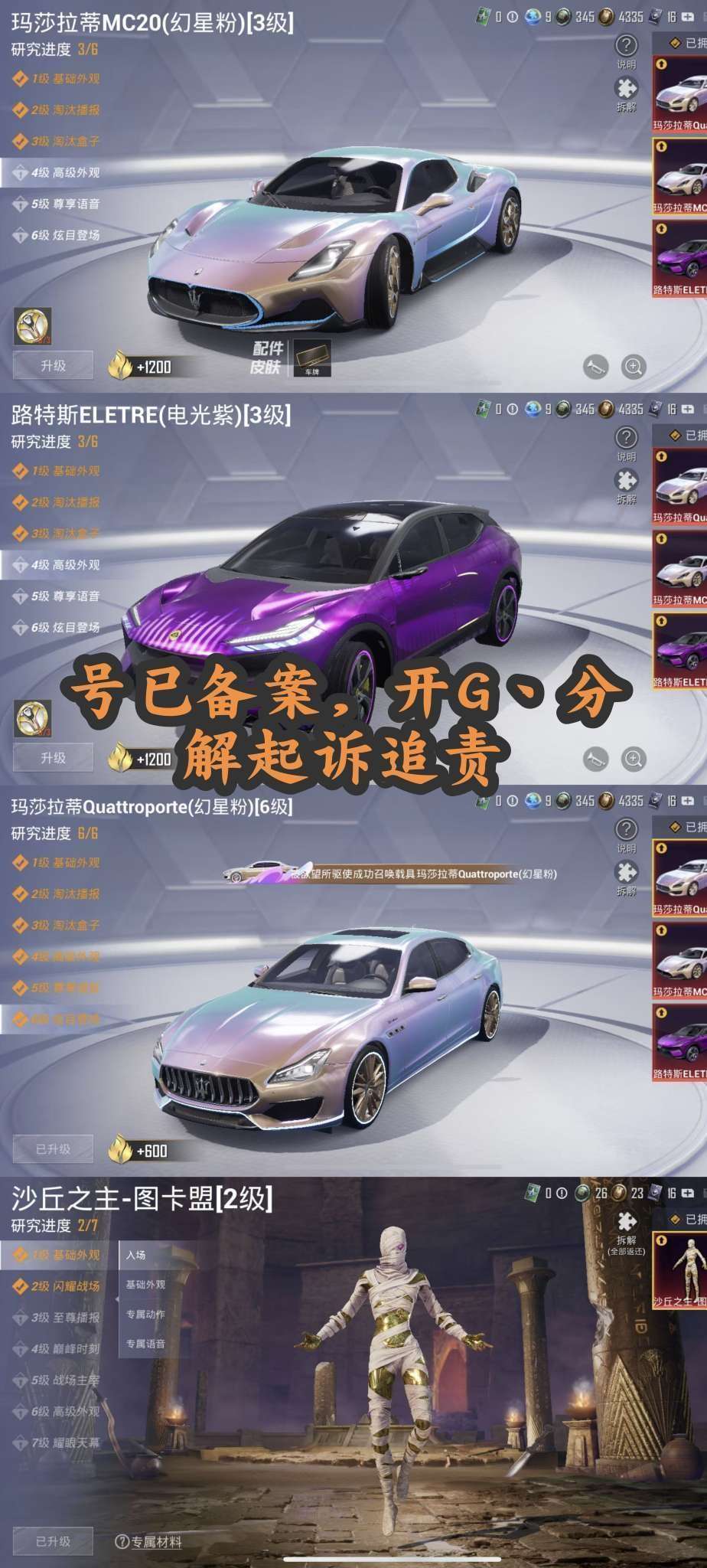 苹果q区、满级玛莎✨二级红装木乃伊✨18特效枪✨双三级载具路特斯/玛莎✨四升级飞行器✨16粉装5载具