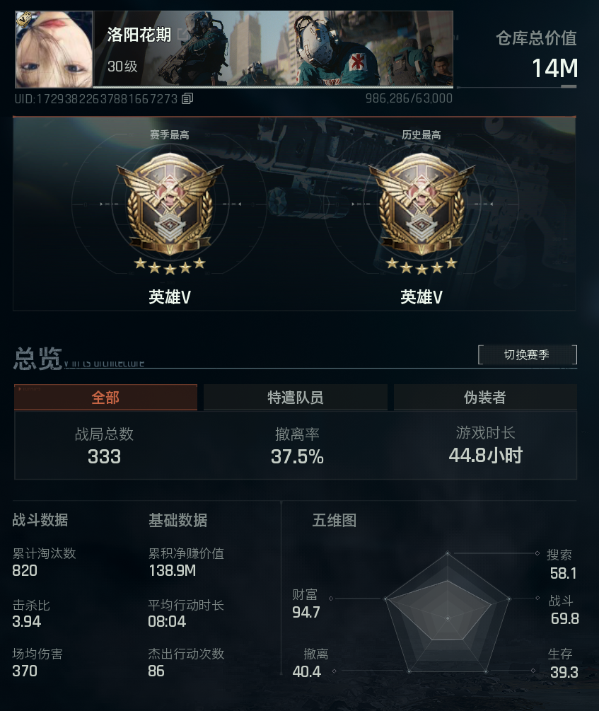 ⭐纯币1200W⭐69.8战斗分⭐2*3复合安全箱⭐14M⭐军械库钥匙三件套⭐主客房201⭐竞技套⭐