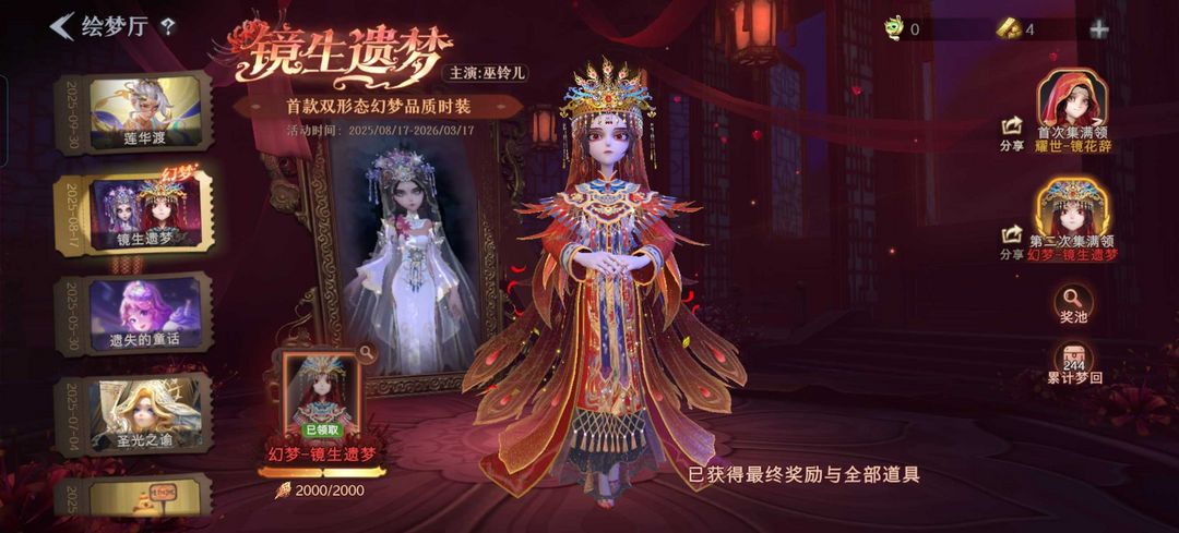 满抽逍遥莲华渡✨1幻梦5金耀世全满抽有兔宝✨叶罗丽全皮✨故宫神兽全皮✨收费道具多双字ID✨看描述租