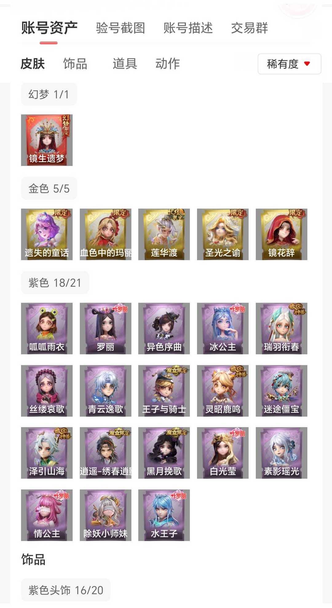 满氪1幻梦5耀世全金皮有兔宝✨赞萌露比✨镜生遗梦✨圣光之谕遗失的童话✨道具皮全✨3亿铲铲币乱用拉黑
