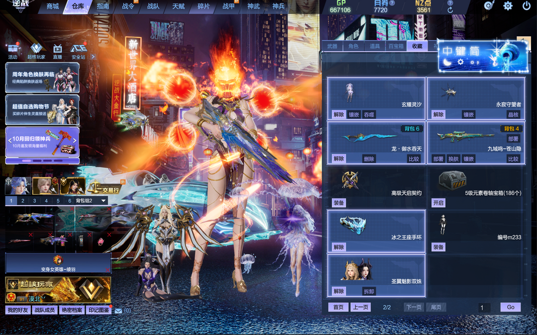 装备描述:山海星寰9+9、天帝、天启4件套、天鲲、诸神、创世、天枢戒、暗星头、珍离威龙,魅影双珠~塔防3臂铠、龙太子、龙女、绝金、熊猫、变身英雄双龙溪,秘境基础839.2、冰43、风43、光41,爆破全装