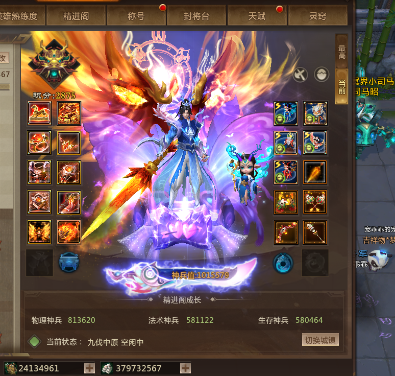 101W神兵,年少韩当-52W魅力,皮肤496个,小玩具多多。逃跑中退拉黑。