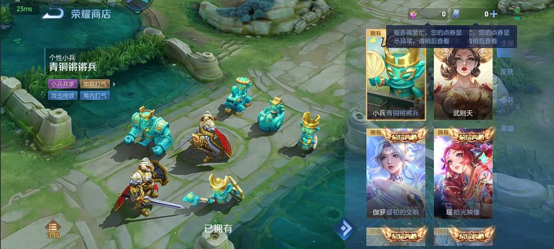 荣耀v10不禁言❤745皮满皮肤满按键满水晶满星元满小兵❤历史国服貂蝉1.9万❤️青铜锵锵小兵