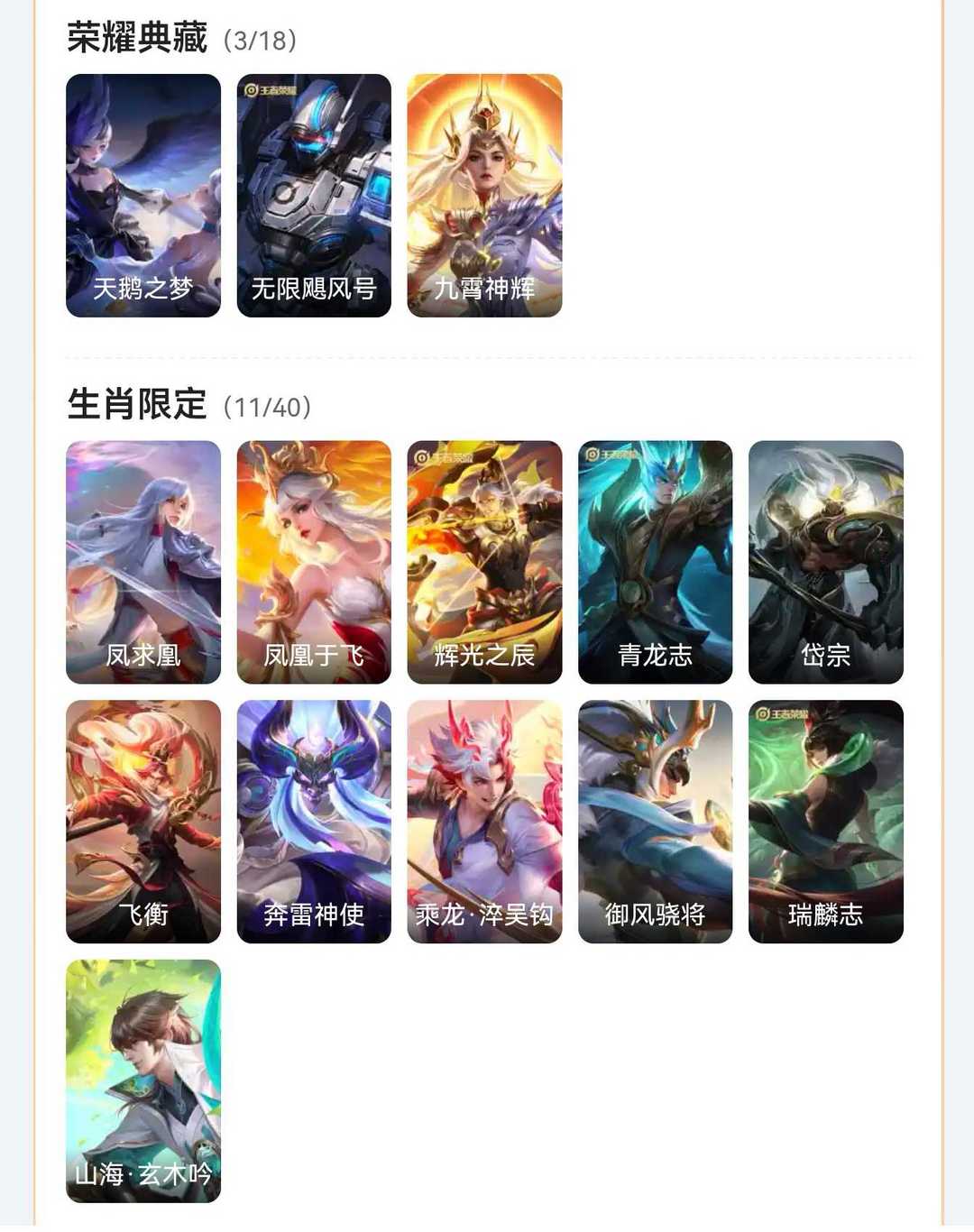 贵十386皮⭐孙策龙年限定⭐琥珀纪元伽罗⭐九霄神辉无限飓风天鹅之梦一念神魔孙行者◆11个历史金标
