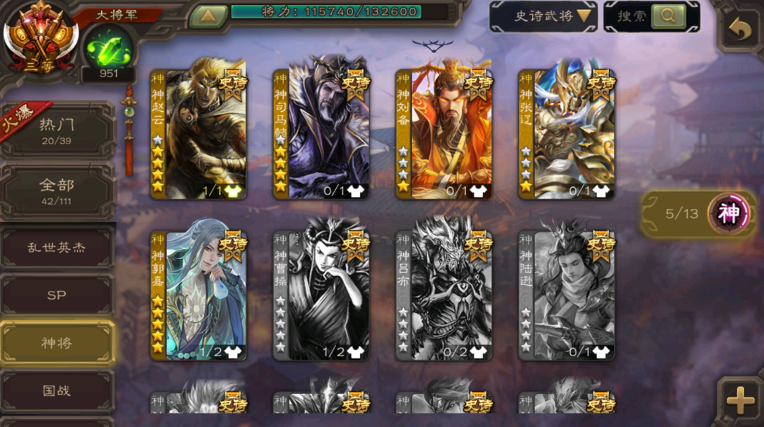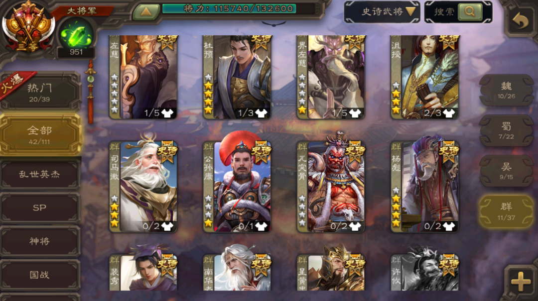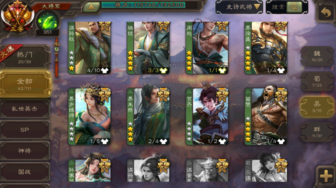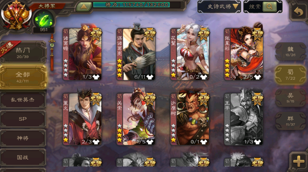 【大将军】45史诗◆神司马懿◆动神郭嘉◆动孙寒华◆动谋诸葛亮◆神鲁肃回廊杜预杨彪裴秀界左慈马钧界徐盛